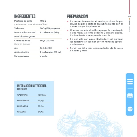 SUMANDO Tallarines 300 g (3/4 paquete) ▶ Una vez dorado el pollo, agregar la mantequi- SUMANDO