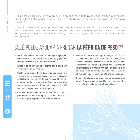 16 La pérdida de peso es muy frecuente en el cáncer. Esto puede deberse tanto a factores Selección de alimentos 24 17