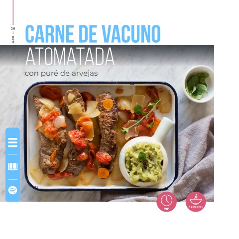 con puré de arvejas Aceite de oliva 4 cucharadas (40 ml) ▶ Colocar sobre la carne las verduras lavadas y