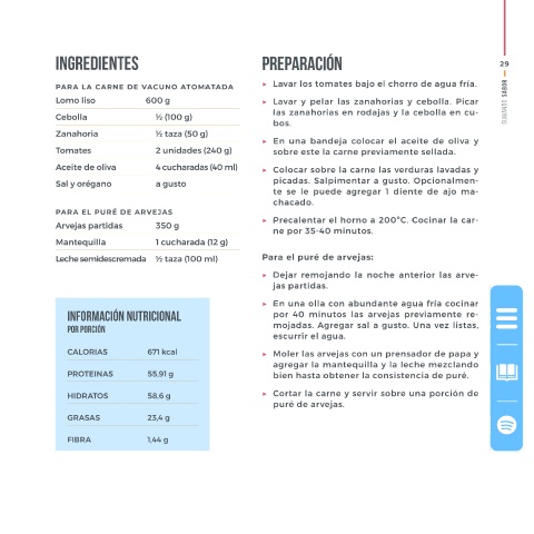 HIDRATOS 58,6 g ▶ Cortar la carne y servir sobre una porción de