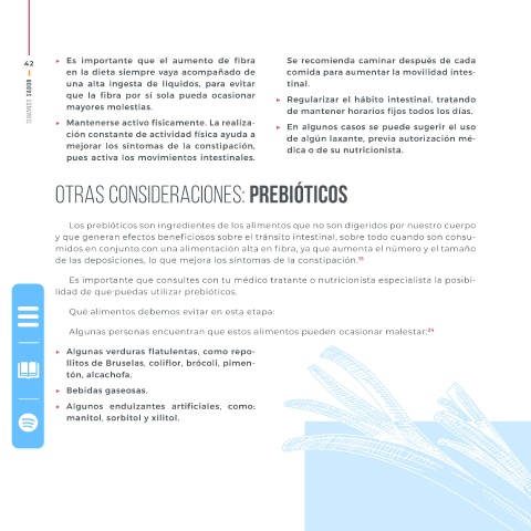 Es importante que consultes con tu médico tratante o nutricionista especialista la posibi- ben tener precaución con el consumo de fibra.