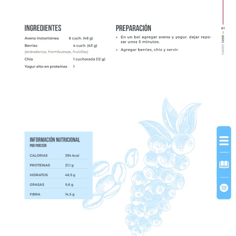 SUMANDO (arándanos, frambuesas, frutillas) ▶ Agregar berries, chía y servir. SUMANDO