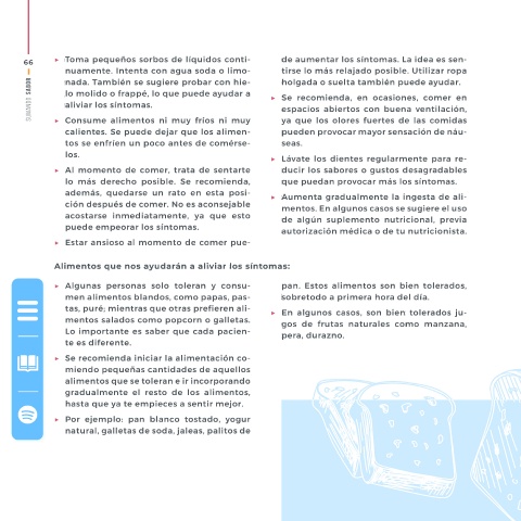 66 ▶ Toma pequeños sorbos de líquidos conti- de aumentar los síntomas. La idea es sen- Alimentos a evitar en esta etapa 6-27 67
