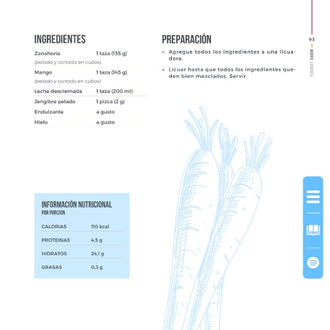 SABOR no requiere Zanahoria 1 taza (135 g) ▶ Agregue todos los ingredientes a una licua- SABOR