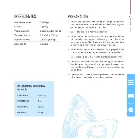 SABOR MOUSSE Paltas maduras 2 (350 g) ▶ Pelar las paltas, molerlas y luego pasarlas SABOR