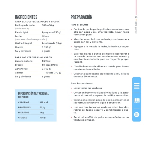 con verduras al vapor GRASAS 16,6 g ▶ Servir el soufflé de pollo acompañado de las